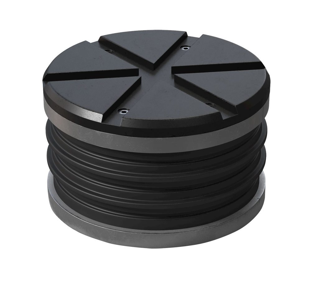 Different variations of material possible, mainly a low friction sliding plate to avoid noise on the top end |