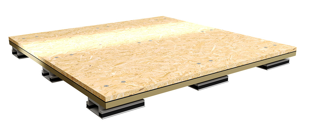 Floating floor support especially for metro and tram Absorption of external disturbing vibration and elongation compensation “Pick-and-place” solution for short assembly time |